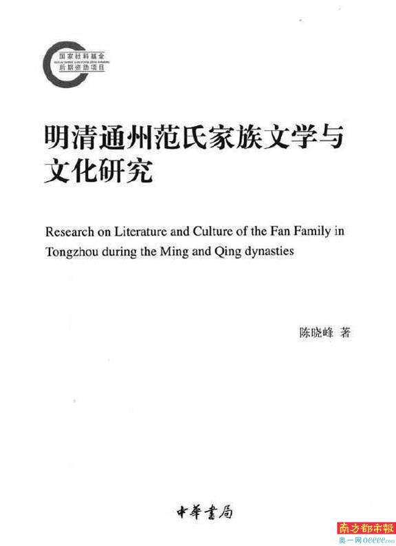 《明清通州范氏家族文学与文化研究》,陈晓峰著,中华书局2022年9月版,138.00元。