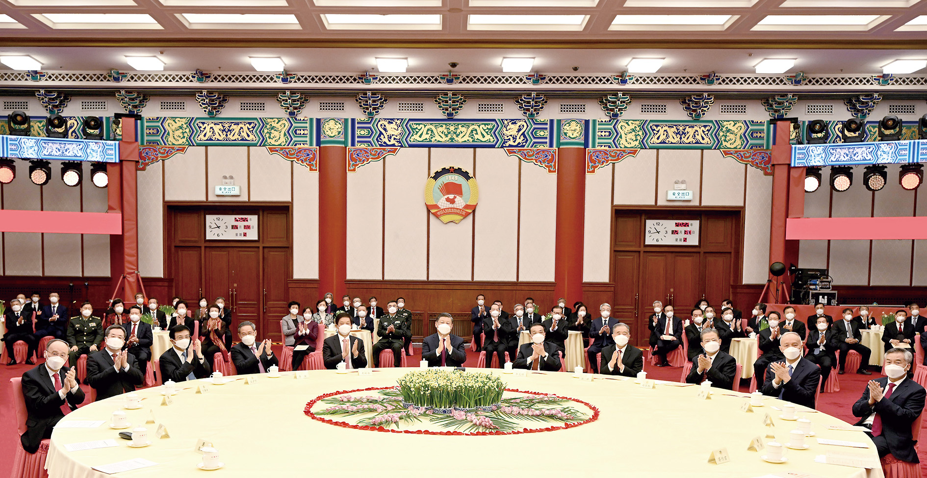 12月30日,全国政协在北京举行新年茶话会。党和国家领导人习近平、李克强、栗战书、汪洋、李强、赵乐际、王沪宁、蔡奇、丁薛祥、李希、王岐山出席茶话会并观看演出。 新华社发