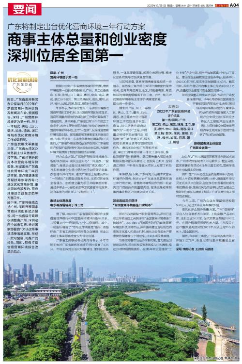 昨日,广东省政府新闻办公室举行2022年广东省营商环境评价情况新闻发布会。