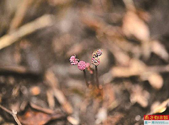 值得一提的是,此次调查中,在大鹏新区七娘山发现大柱霉草,这是深圳市第一次记录的物种,霉草科和喜荫草属亦为深圳市新记录科和新记录属。“这类植物对环境要求极高,只生长在一些人迹罕至、落叶覆盖的林下,它虽然叫‘大柱’,整个植株也不过4厘米高,所以极难被发现。”据参与调查的科研人员介绍,霉草科种类均为以菌根为营养的腐生植物,全世界约11属50种,广布于热带和亚热带。大柱霉草是腐生草本,淡红色,体内没有叶绿体和叶绿素,不进行光合作用,仅靠菌根获取营养,外观像一种真菌,果实像迷你版的杨梅。