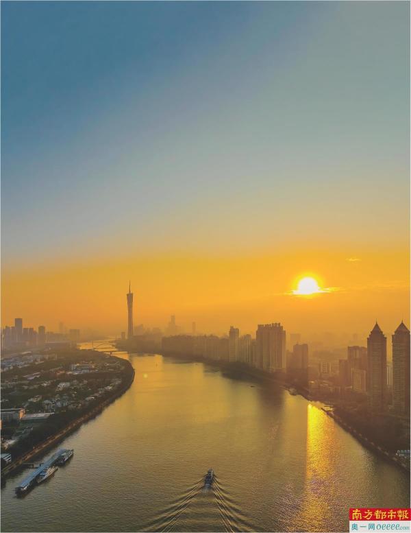 从广州市海印公园远眺2023年的第一缕阳光。 南都拍客 吴建业 摄