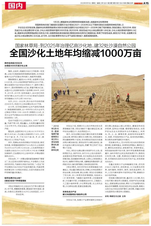 《全国防沙治沙规划(2021—2030年)》经国务院审批同意,已于近日正式印发实施。