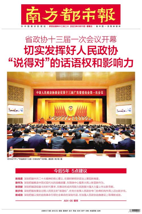 1月10日下午,广东省政协十三届一次会议在广州开幕。