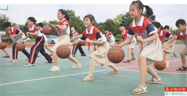 安徽省淮北市相山区郭王小学,学生们在练习篮球。 新华社发