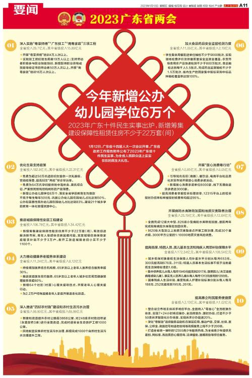 1月12日,广东省十四届人大一次会议开幕,广东省政府工作报告附件公布了2023年广东省十件民生实事,为全省人民群众送上实实在在的民生大礼包。