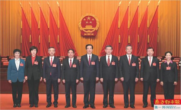 省十四届人大常委会领导班子合影。左起分别是许红、刘雅红、张硕辅、叶贞琴、黄楚平、黄宁生、吕业升、肖亚非、谭玲。 南方日报记者 王辉 肖雄 石磊 万稳龙 摄