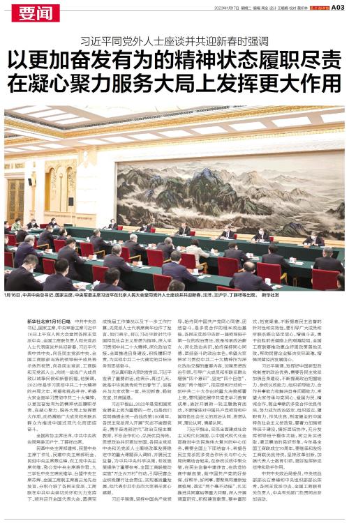 中共中央总书记、国家主席、中央军委主席习近平16日上午在人民大会堂同各民主党派中央、全国工商联负责人和无党派人士代表座谈并共迎新春。