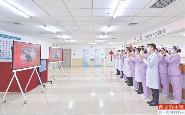 这是习近平通过视频连线,同黑龙江省哈尔滨医科大学附属第一医院的医护人员亲切交流。 新华社发