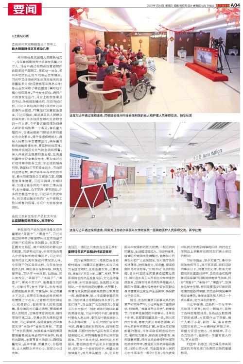 1月18日,中共中央总书记、国家主席、中央军委主席习近平在北京通过视频连线看望慰问基层干部群众,向全国各族人民致以新春的美好祝福。