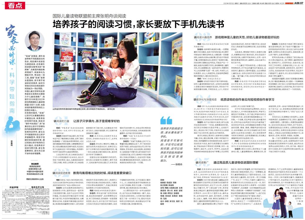 张明舟还呼吁,家长应尽可能提供机会让孩子多接触图书,帮孩子创建好的阅读的环境,通过阅读让孩子找到自己的兴趣点。在培养孩子阅读习惯方面,家长有首要责任,家长自己读不读书也非常重要。