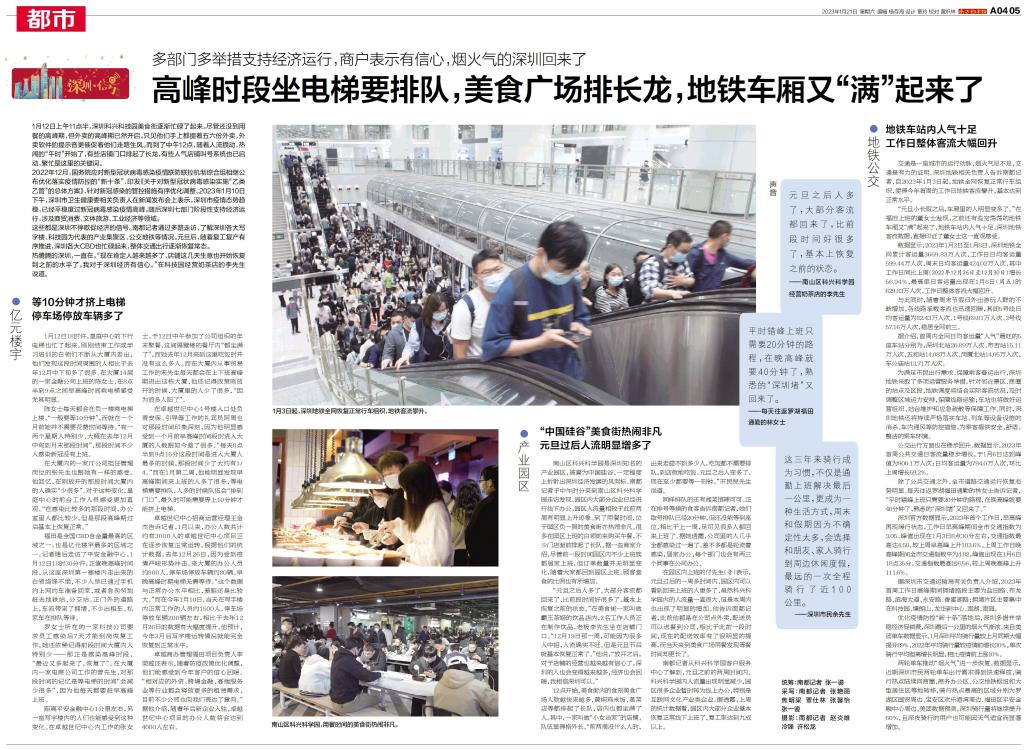 南都记者通过多路走访,了解深圳各大写字楼、科技园为代表的产业集聚区、公交地铁等情况。元旦后,随着复工复产有序推进,深圳各大CBD也忙碌起来,整体交通出行逐渐恢复常态。
