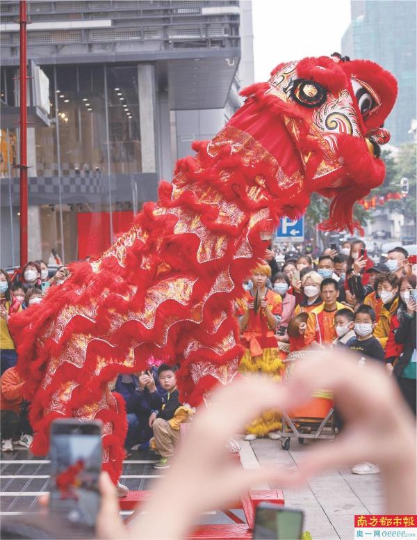 1月22日农历正月初一,兔年第一天,广州北京路步行街人潮涌动。醒狮舞动红火火,风车顺风“转大运”。春回大地,万象更新。天南地北张灯结彩,大街小巷喜气洋洋,处处洋溢着浓浓年味和勃勃生机。 南方日报记者 姚志豪 摄