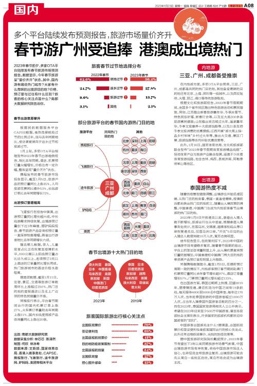 2023年春节前夕,多家OTA平台陆续发布春节旅游市场预测报告。