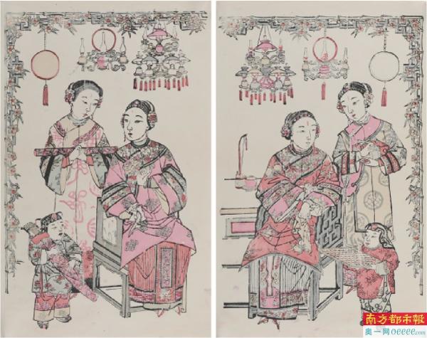 南都记者在展厅中见到四川绵竹年画中的女子形象比较娇俏,用色鲜艳。而杨柳青年画的女子造型则比较接近中国传统人物画的造型,肤色柔和,比较接近传统文人的审美。