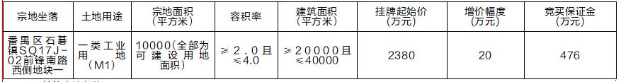 6.竞得人的商事登记和税务登记地址应在番禺区范围内,相关手续应在土地成交之日起2个月内完成。竞得人在土地出让年期内商事登记地、税务征管关系、主营业务和统计关系不得迁出番禺区。