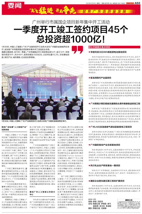 1月30日,中国人工智能(广州)产业园项目开工动员大会在广州国际金融城西区举行,这也是广州市国资国企项目新年集中开工活动的主会场。