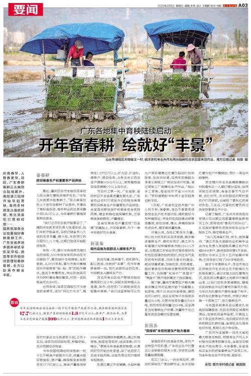 国务院常务会议部署做好春耕备耕工作,广东全省多地多措并举抓早抓实早稻、蔬菜等农作物田间管理和春耕备耕,全力以赴再夺粮食丰收。