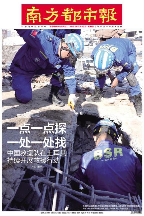 地时间2月10日,中国蓝天救援队队员在土耳其马拉蒂亚省开展搜救作业。
