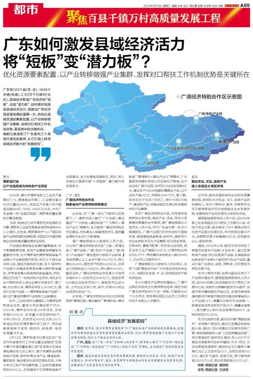 如何更好地激发县域经济活力,是推动广东经济高质量发展的重要一步。而优化县域资源的要素配置、以产业转移做强产业集群、发挥对口帮扶工作机制优势,更是其中的关键所在。