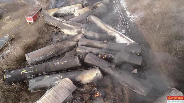 美国媒体报道,尽管未造成人员死亡,俄亥俄州列车脱轨事件引发公众对铁路工人危险工作条件的关注以及对生态长期损害的担忧。