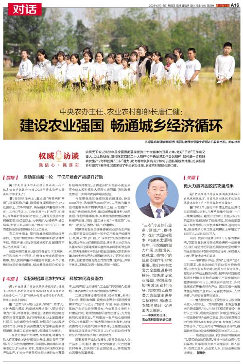 农稳天下安。2023年是全面贯彻落实党的二十大精神的开局之年,做好“三农”工作意义重大。