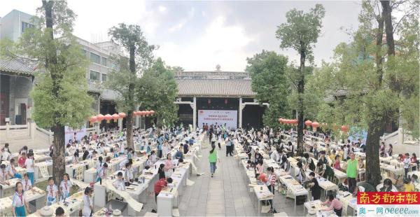 当地小学生正在鳌台书院参加现场书法竞赛。今日的鳌台书院,成为东莞厚街镇举办大型文化活动的场地之一。 本版图片由鳌台书院提供