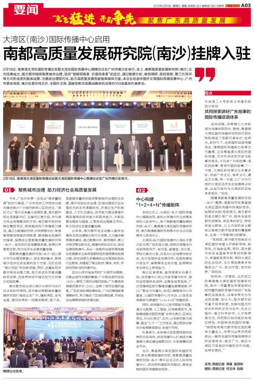 2月18日,粤港澳大湾区国际传播论坛暨大湾区国际传播中心揭牌仪式在广州市南沙区举行。