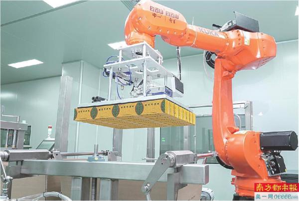 广药集团旗下白云山中一药业智能化生产车间装箱码垛机器人。