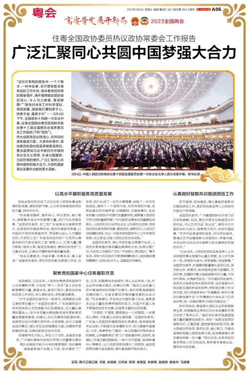 3月4日下午,全国政协十四届一次会议开幕,住粤全国政协委员现场聆听政协第十三届全国委员会常务委员会工作报告。