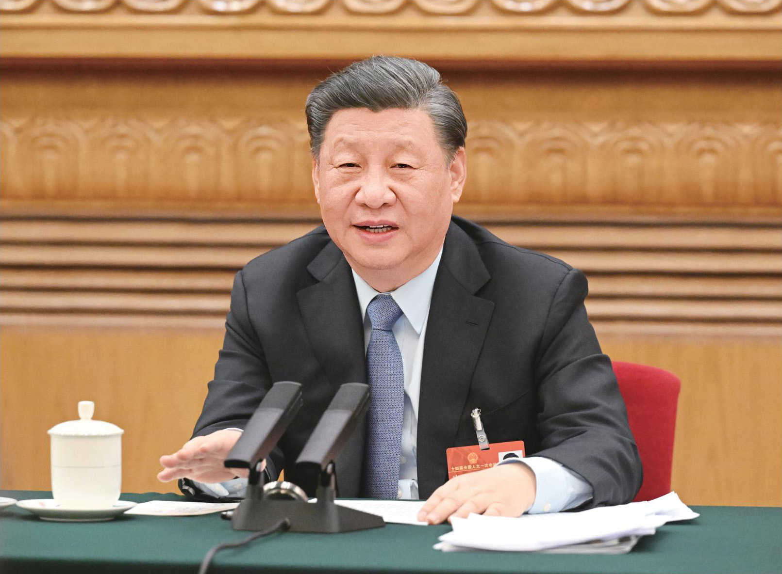 3月5日,中共中央总书记、国家主席、中央军委主席习近平参加他所在的十四届全国人大一次会议江苏代表团审议。 新华社发