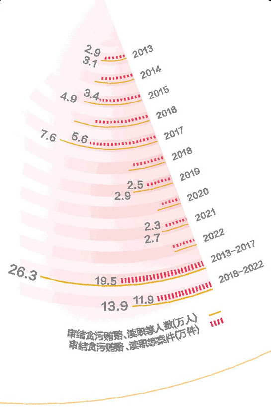 依法惩治腐败犯罪。审结贪污贿赂等职务犯罪案件11.9万件13.9万人。依法从严惩处孙政才等92名原中管干部,彰显党中央有腐必惩、有贪必肃的坚定决心。