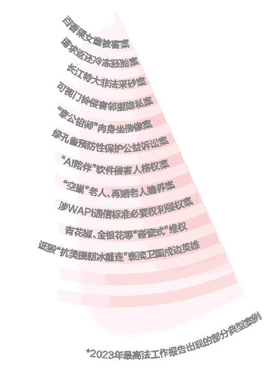 今年的最高法工作报告回顾了多起典型案例,涉及生态环境、网络诽谤、电信网络诈骗、老年人权益保护、贪腐犯罪等多个领域。关于依法纠正冤错案件,提及了五周案、张玉环案、张文中案等。