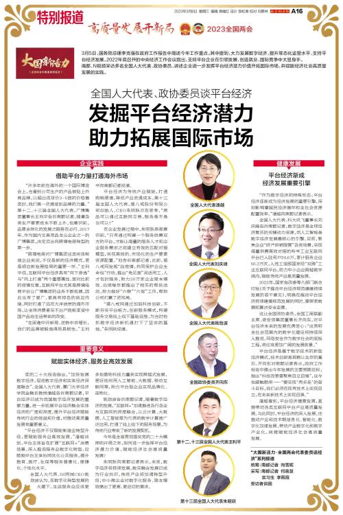 南都、N视频采访多名全国人大代表、政协委员,讲述企业进一步发挥平台经济潜力价值开拓国际市场,并赋能经济社会高质量发展的实践。