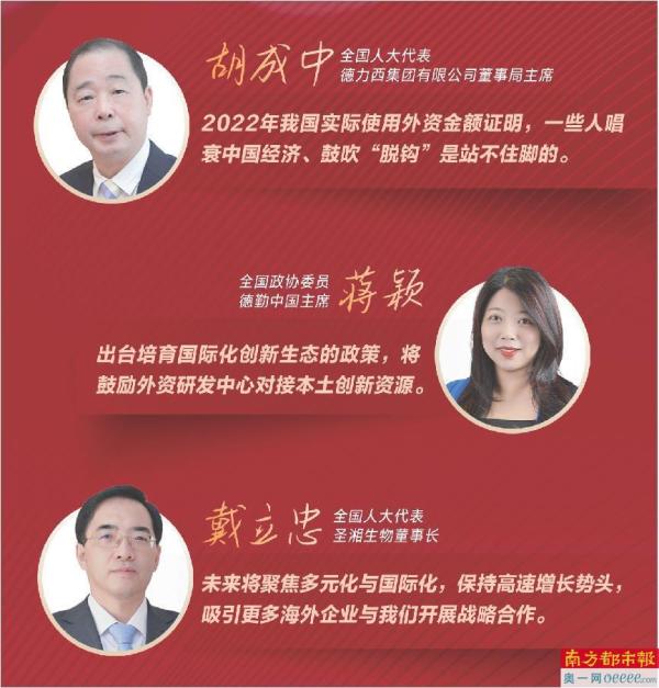 全国人大代表、德力西集团有限公司董事局主席胡成中留意到,在世界经济复苏放缓、全球金融市场波动加大、单边主义和保护主义升温、对外经贸发展面临的不确定性明显增大的复杂背景下,2022年,我国实际使用外资金额达到12326.8亿元人民币,同比增长6.3%。不仅实现稳定增长,而且引资结构持续优化、大项目带动作用增强,印证外资企业充分看好中国经济发展前景,参与中国高质量发展的步伐加快。