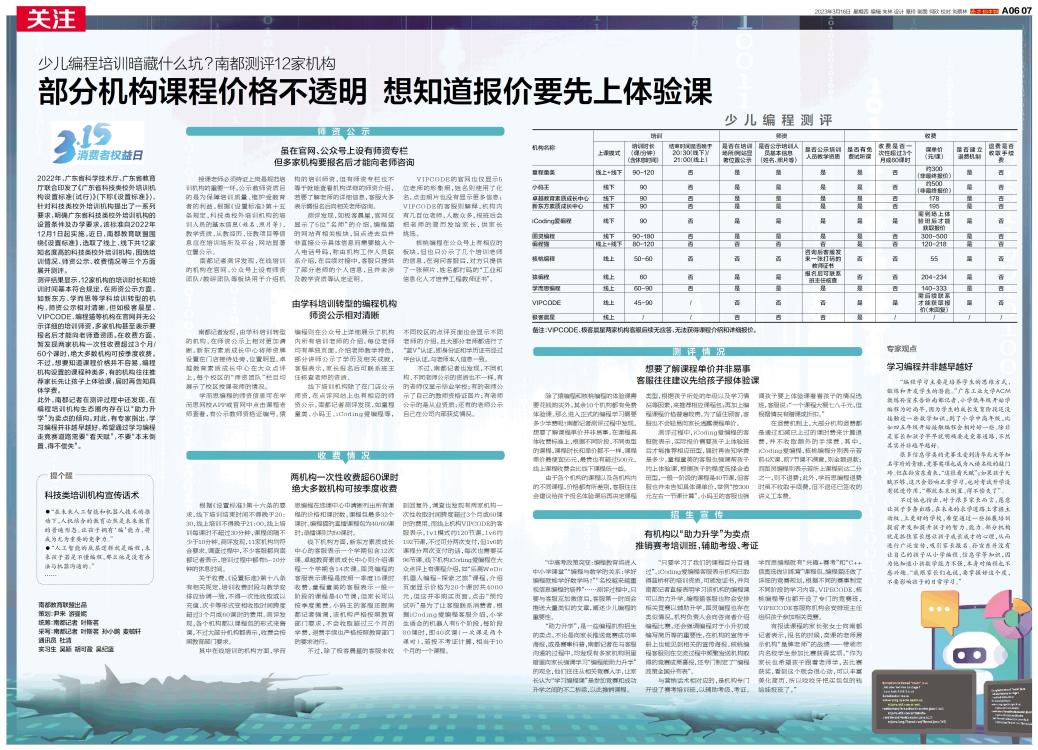 近日,南都教育联盟围绕《设置标准》,选取了线上、线下共12家知名度高的科技类校外培训机构,围绕培训情况、师资公示、收费情况等三个方面展开测评。