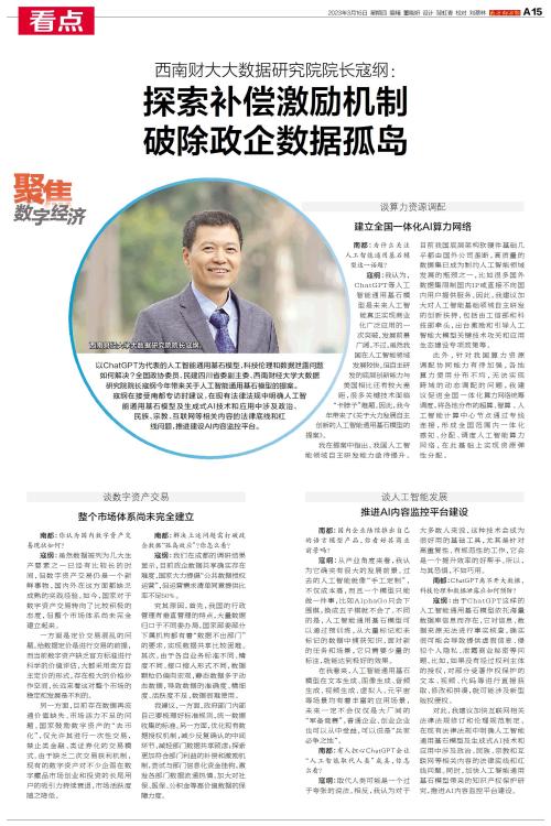 全国政协委员、民建四川省委副主委、西南财经大学大数据研究院院长寇纲今年带来关于人工智能通用基石模型的提案。