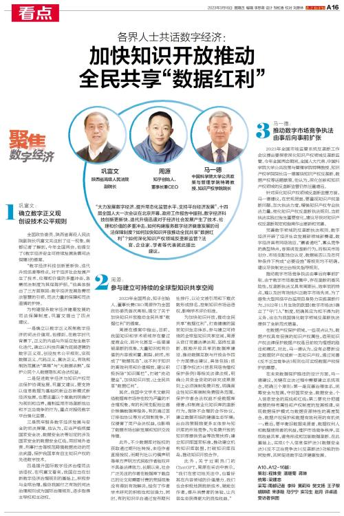 如何构建服务数字经济健康发展的司法保障制度?如何加快知识开放推动全民共享“数据红利”?如何深化知识产权领域反垄断监管?