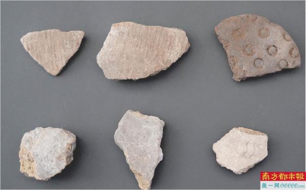 2. 河北尚义县四台新石器时代遗址出土的戳印纹陶片。