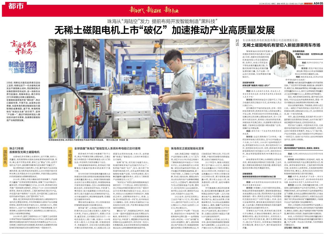 无稀土磁阻电机上市“破亿” 加速推动产业高质量发展