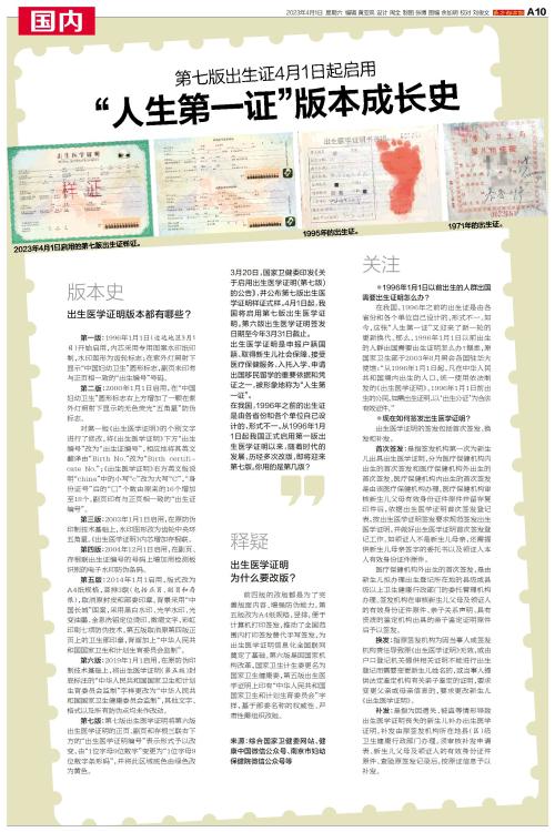 4月1日起,我国将启用第七版出生医学证明。第六版出生医学证明签发日期至今年3月31日截止。
