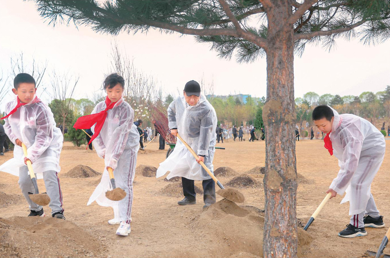 铲土造坑、培土围堰、提水浇灌……习近平接连种下油松、西府海棠、国槐、柿树、红瑞木等树苗,现场一派繁忙景象,气氛热烈。习近平一边劳动,一边教孩子种树的方法,并与孩子们聊起学习生活情况,问他们家里父母多大年纪,在小学有没有安排生物课,对植物了解多少,现在作业多不多,课外辅导多不多,叮嘱他们从小要热爱劳动,做到德智体美劳全面发展。习近平强调,孩子教育,跟植树一样,一开始就要竖正,否则就会长歪。
