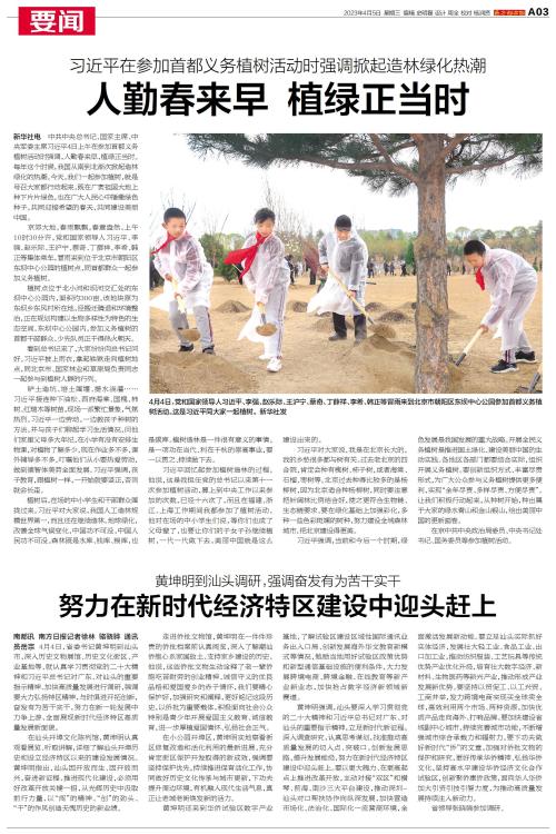 中共中央总书记、国家主席、中央军委主席习近平4日上午在参加首都义务植树活动时强调,人勤春来早,植绿正当时。