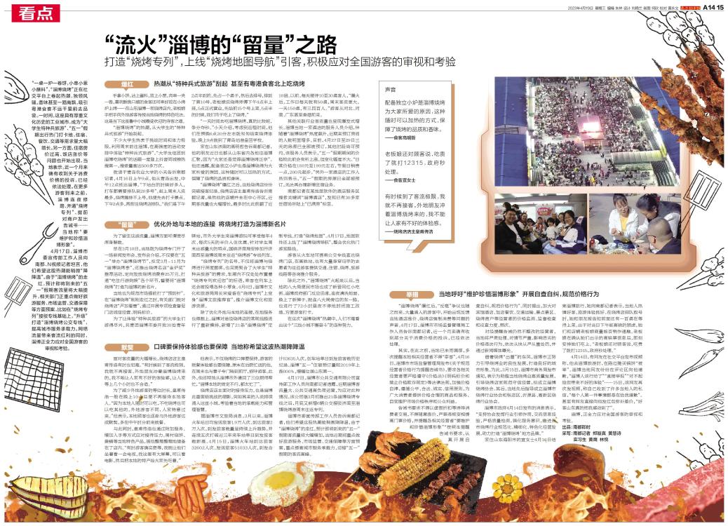 “一桌一炉一卷饼,小串小葱小蘸料”,“淄博烧烤”正在社交平台上卷起热潮、独领风骚。