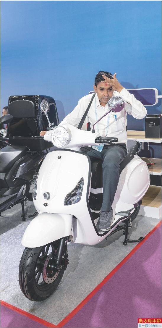 Ashok Kayada是来自印度的空调经销商,他已经连续参加了30次广交会。在此次广交会上,Ashok Kayada对一辆白色的国产电动摩托车产生了强烈的兴趣。