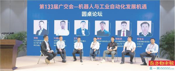 4月18日,由中国对外贸易中心、SGS、南方都市报社联合主办的“遇·见 广交 第133届广交会——机器人与工业自动化发展机遇”论坛,在广交会A区展馆举行。