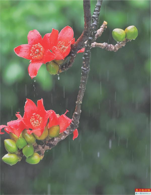 4月19日,广州海印桥旁的木棉花在雨中盛开。 南都拍客 陈健明 摄