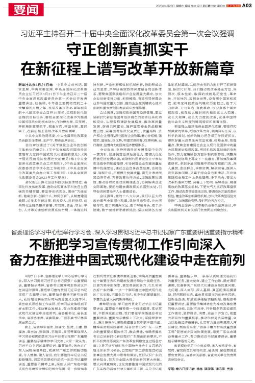 4月21日下午,省委理论学习中心组举行学习会,深入学习贯彻习近平总书记视察广东重要讲话、重要指示精神。