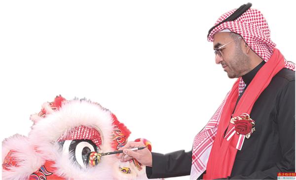 今年1月,在沙特阿拉伯首都利雅得举办的迎春活动中,嘉宾为“醒狮”点睛。 新华社发
