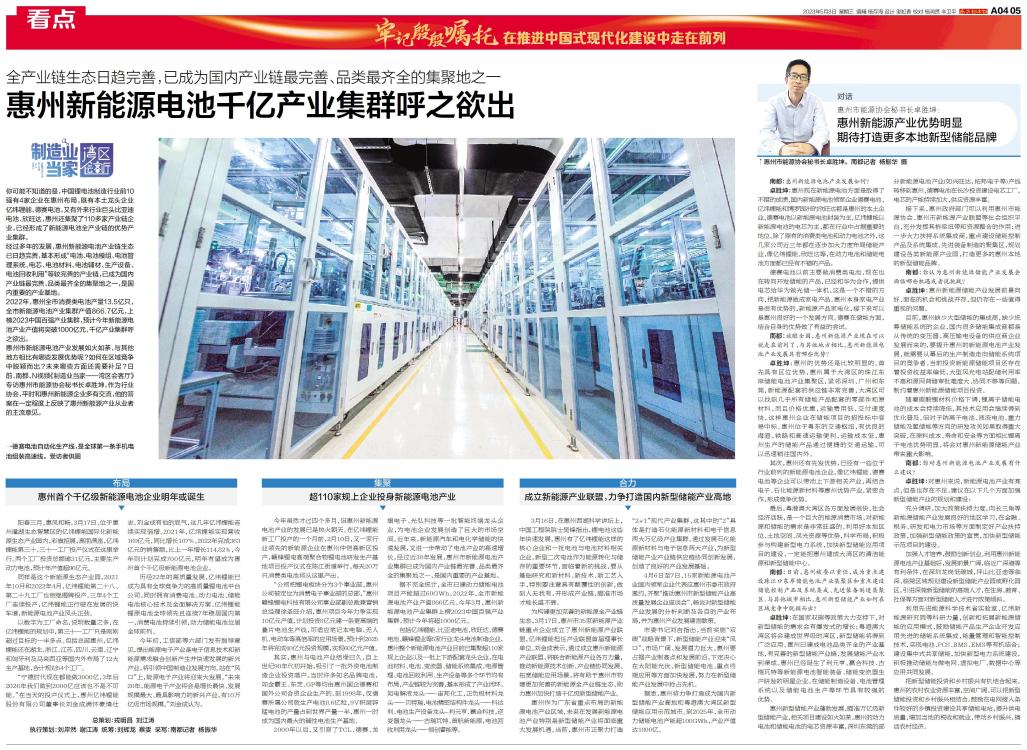 惠州新能源产业优势明显 期待打造更多本地新型储能品牌