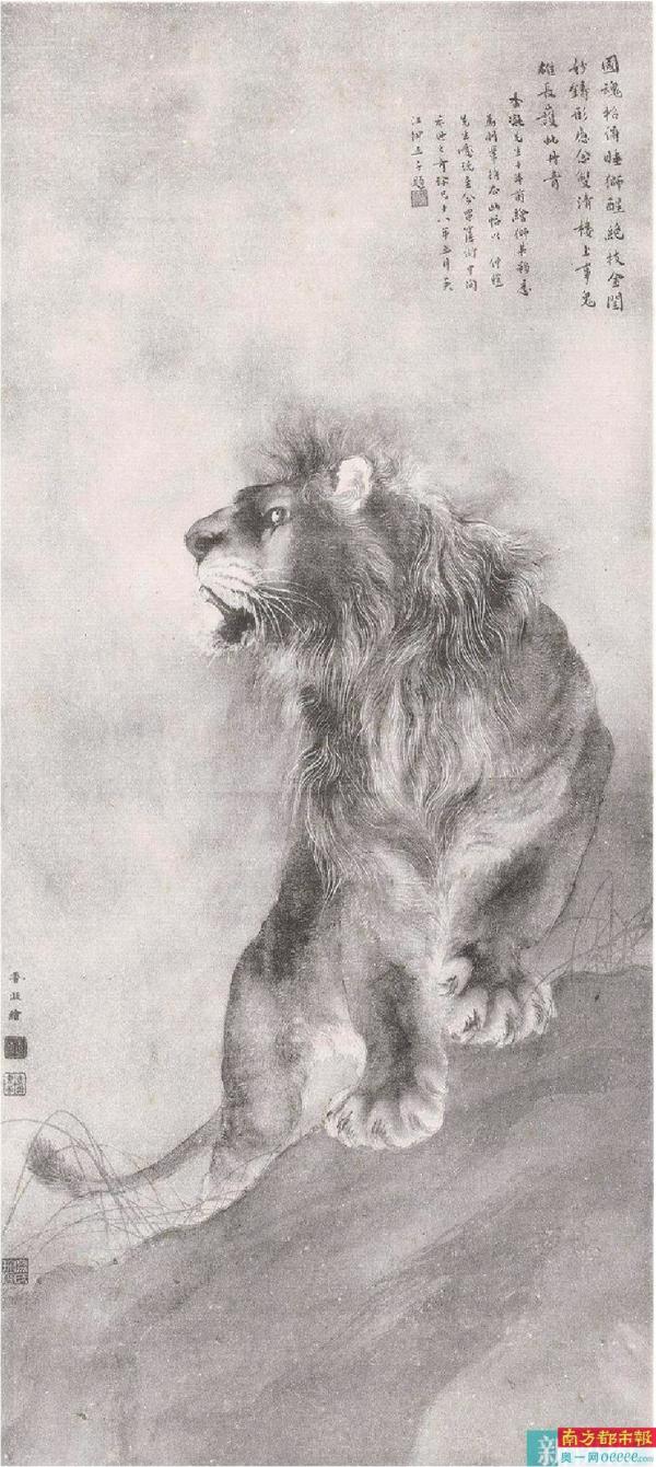 何香凝画、柳亚子题的《雄狮西顾图》(又名《国魂》)。